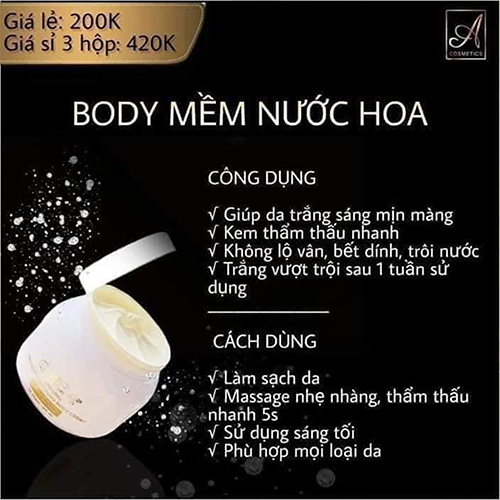 - Kem body mềm nước hoa A Cosmetics
