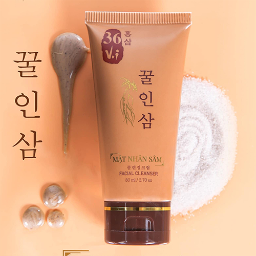 • Sữa Rửa Mặt Nhân Sâm 36 Vị : Tẩy tế bào chết dịu nhẹ và không gây bào mòn da.
