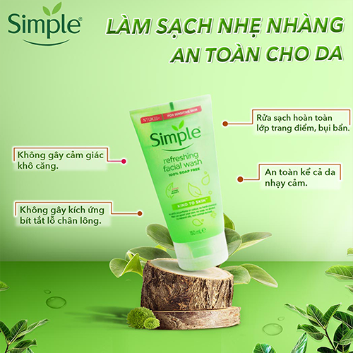 Sữa Rửa Mặt Simple Dạng Gel Kind To Skin Refreshing Facial Wash Ge 150ml